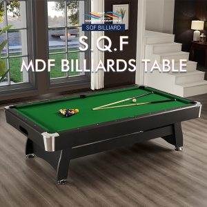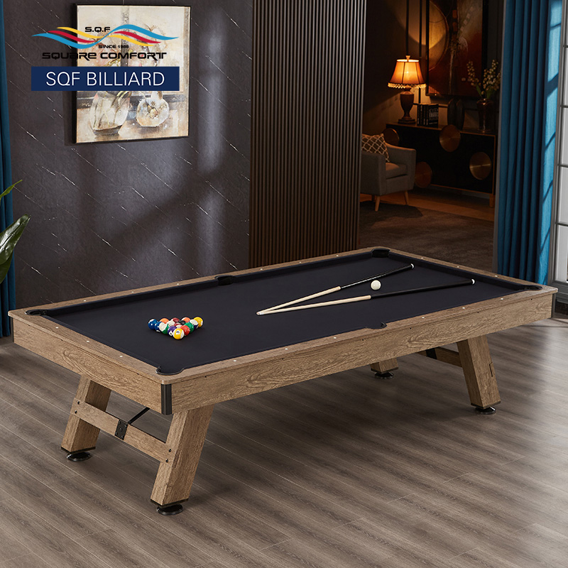 S. Q.F Snooker Table Made in China Wood Grain Color 8 Ball Pool Table with Carbon Fiber Cue Shaft