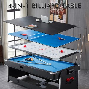 S.Q.F 4-in-1 Multifunctional Game Table Custom Snooker Pool Table with Rotating Feature MDF Slate Cushions for Billiards Fans