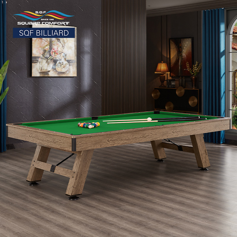 S. Q.F Snooker Table Made in China Wood Grain Color 8 Ball Pool Table with Carbon Fiber Cue Shaft