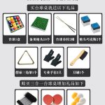 | Accessory | A pair of golf clubs A tripod A box of billiards A box of chocolate powder A cross |
