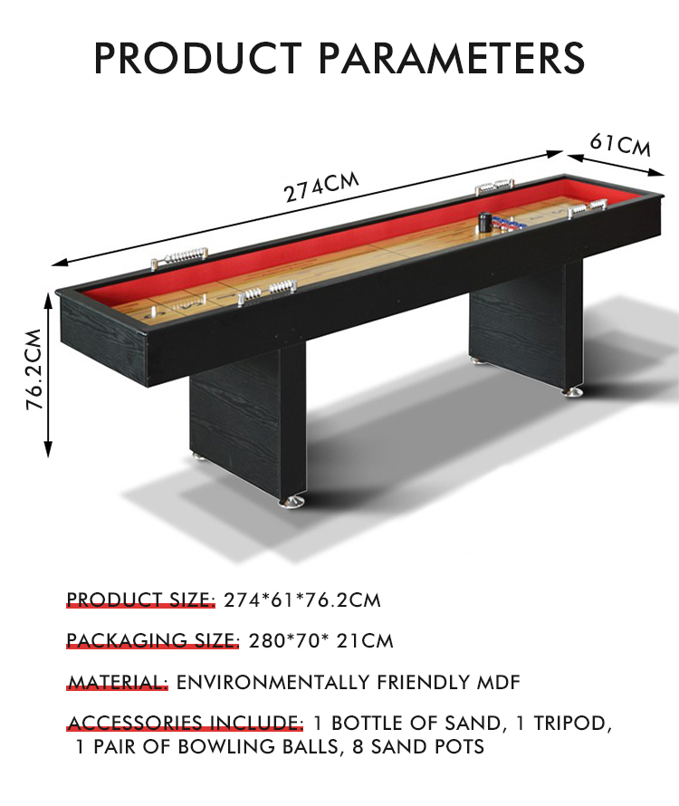S.Q.F Europe Popular 9ft Black Classic Shuffleboard Table Indoor Sports Coin Pusher Gym Entertainment Billardtable